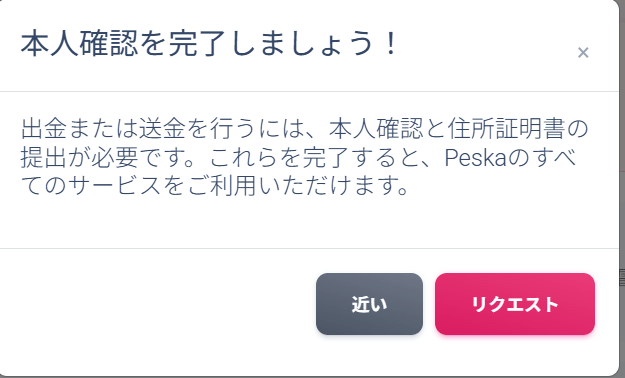 Peskaでは、登録後すぐに入金が可能ですが、出金やその他のサービスを利用するためには本人確認を完了させなければいけません。