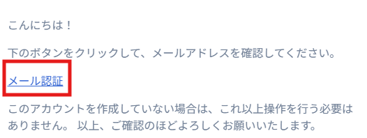 先ほど登録したメールアドレスの受信箱を確認し、メールに記載の「メール認証」をクリックします。